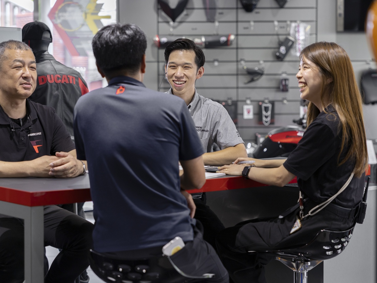 また、スタッフ同士でレース参戦やカスタムをしたり、最新車両に誰よりも先に試乗したりとオートバイを好きな気持ちがあなたのワークライフをより楽しいものへと拡げていきます。
