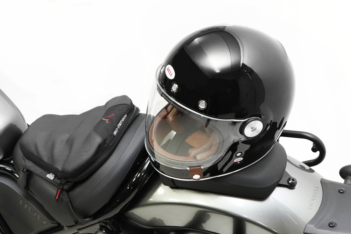 パーツだけでなく、様々な用品も展開。写真は『アクティブ』企画のBELL製ヘルメット。その他、メンテナンス用品やツーリンググッズなど商品は多岐にわたる。