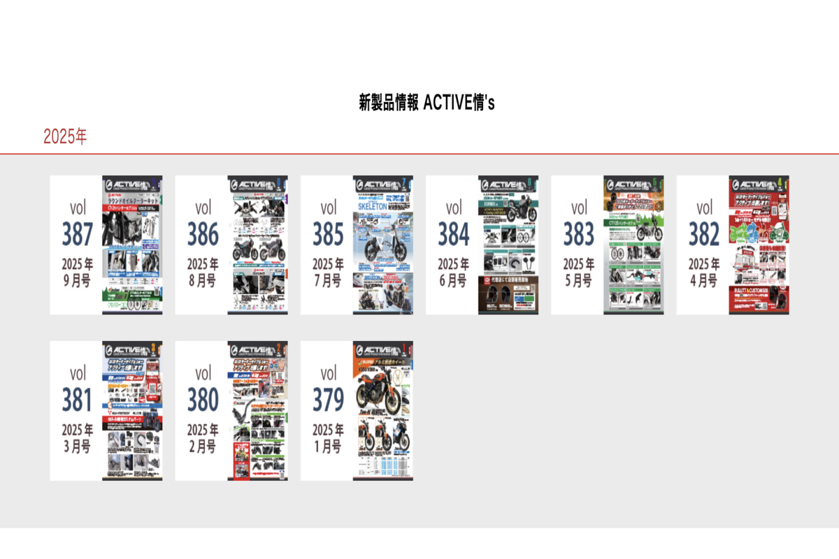 毎月関係者に送られるアクティブ情’s。新製品やニュースが掲載され、『アクティブ』の旬がわかる情報誌もWEB上で発行している。