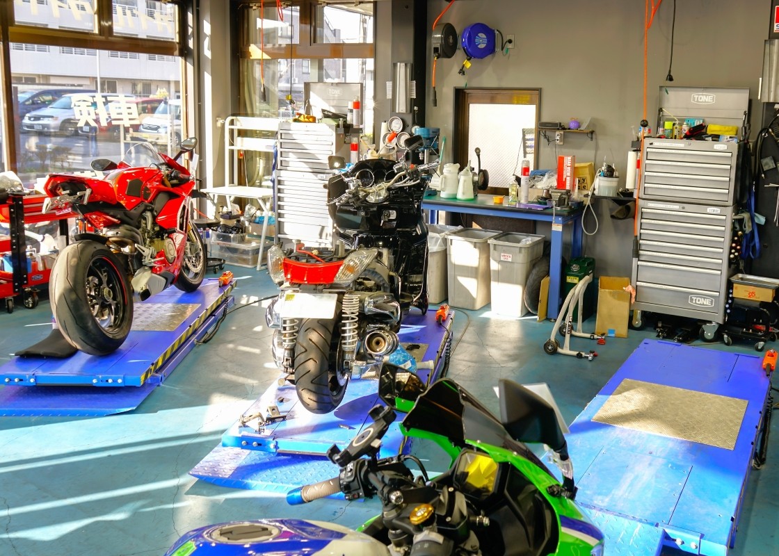 Kさん:中古車販売も開始し、取り扱い車種も原付から大型、アメリカンからスーパースポーツまで多岐にわたるようになりました。そのため、販売に関するお問い合わせが非常に増えています。整備に関しては、「長年お世話になっていたバイク屋が閉店した」「他店で修理依頼を断られた」「ディーラーでの車検入庫が数カ月待ち」など、バイクのトラブルで困っているお客様が増えている印象です。また故障診断に時間がかかるような、重整備が必要な修理車両も多くなってきています。