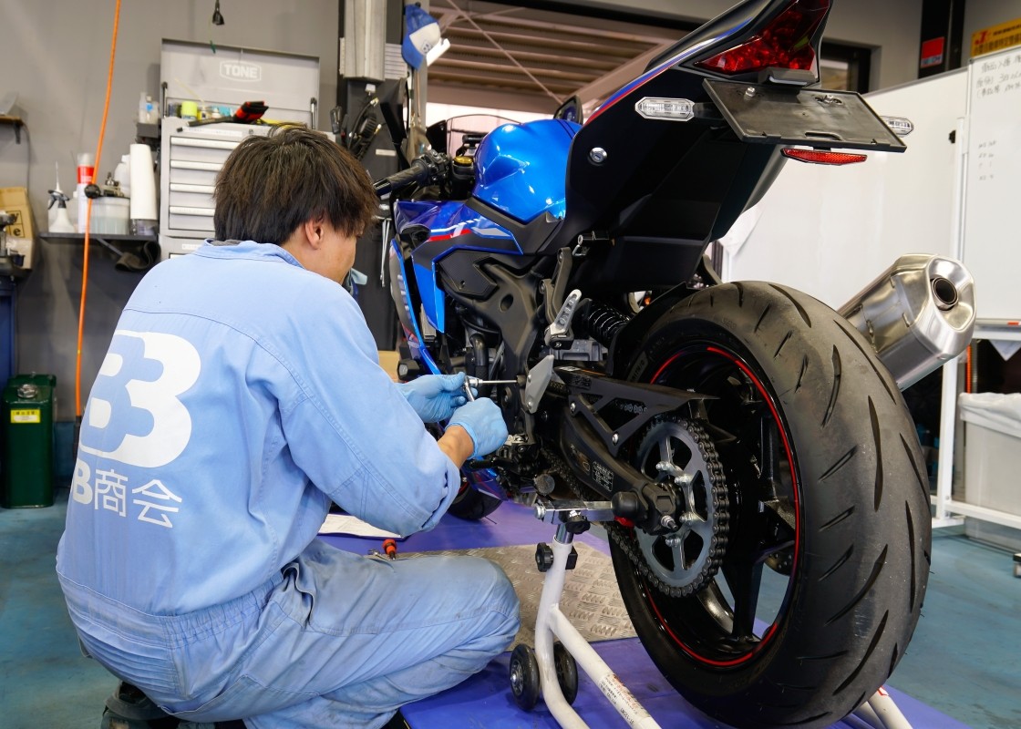 もちろん「バイクの総合病院」と謳うショップなので、中古車であっても整備をしっかり行ってお客様に販売しています。納車後1カ月、または走行1,000kmまでのショップ保証もお付けしています(※保証の対象外車両もあります)。また、別途費用はかかりますが、当社の「BB商会バイク洗車センター東京大田」と連携しているので、ガラスコーティングを希望のお客様には施工後の納車も対応しています。(※割引あり)