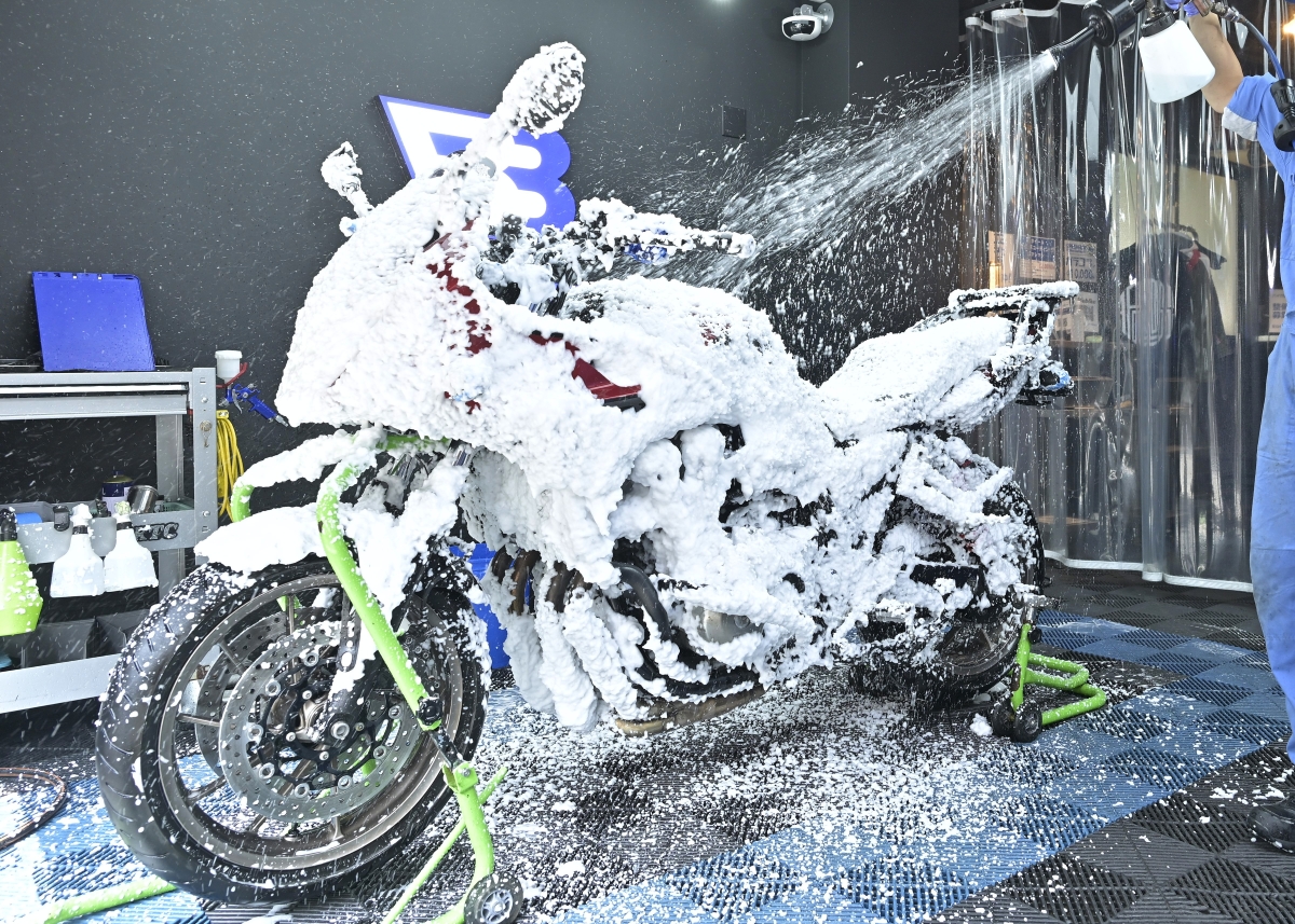購入した新車を綺麗な状態で乗り続けたいと思っていたものの、バイク業界(?) の人の対応に違和感を感じてしまい、それならば自ら「徹底洗車」と「バイク専用ガラスコーティング」のバイク専門プロショップを創業しようと考えたのです。そして事業スタートしたのが、東京大田区の「BB商会バイク洗車センター東京大田」です。もうすぐ2年を迎えますが、これまで4,000台ほどの施工実績があり、ネットでの口コミもとても高い評価をしていただいています。