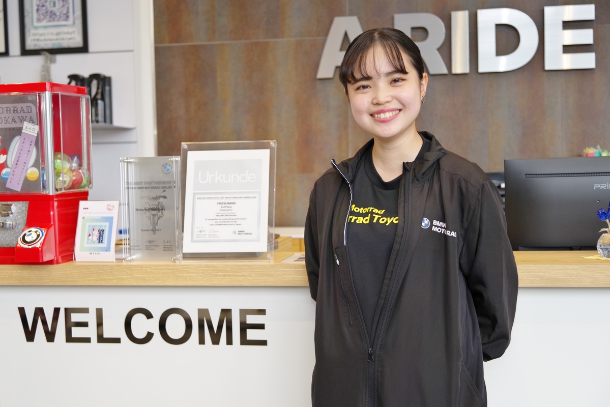 田中さん:家族ぐるみでバイクに乗っていて、元々バイクが好きでした。家の近所にMotorrad Toyokawaがオープンすることを親が教えてくれて、店舗の前を通ったら大きく「スタッフ募集」と書かれていたのが、会社を知ったきっかけでした。
