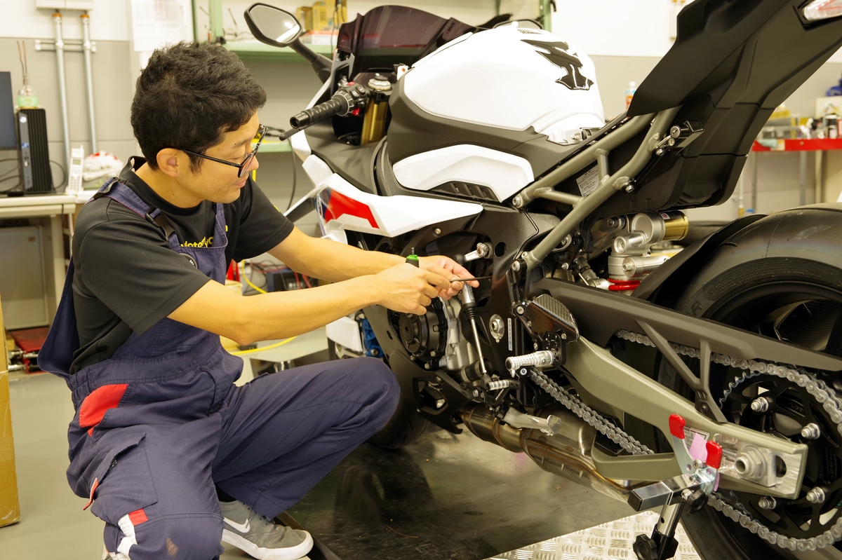 ずっと豊田店でメカニックをしていましたが、昨年のMotorrad Toyokawaのオープンに合わせて異動し、店長兼工場長に就きました。ありがたいことに、いきなり一つのお店を任せられることになり、そこから色々覚えました。この1年、とても早かったですね(笑)。