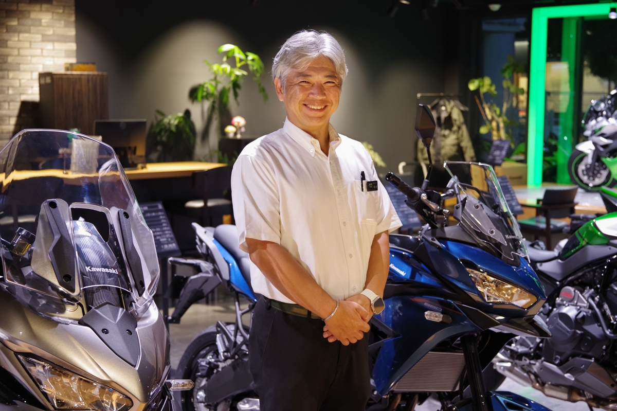 今、その舵取りを担っているのが、2024年7月から代表取締役社長に就任した加藤 宏さんだ。創業者はカワサキのテストライダーを担当していたお父様で、加藤さんは3代目社長にあたる。以前から八尾カワサキの取締役として運営方針や人事などの重責を担い、成長を支えてきた。