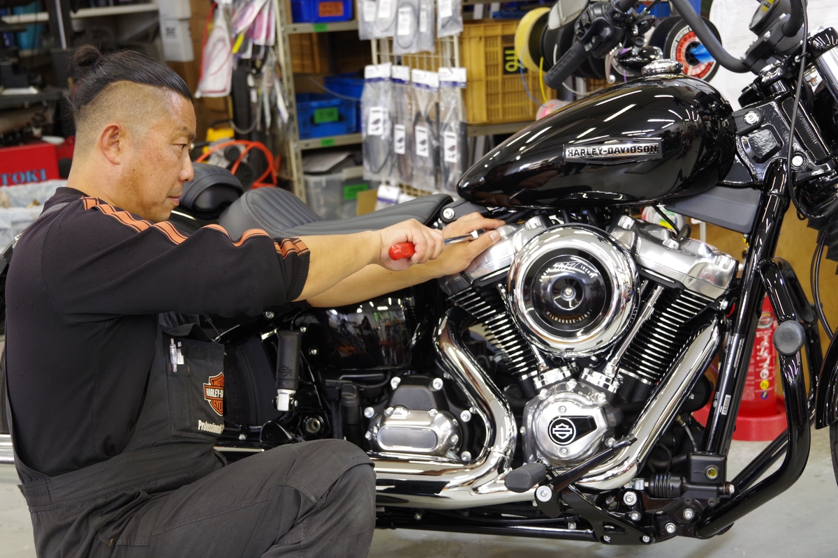 森さん:国産車とハーレーの違いはもちろんあります。ハーレーならではの独特なポイントに壁を感じている人も多いですが、私からすると国産の4気筒よりハーレーの方がよっぽど簡単です。ハーレーは構成がシンプルですし、機械が好きであれば務まる仕事なので、敷居はさほど高くないと思います。